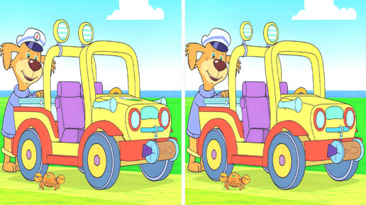 Найдите 5 отличий🔍 на рисунке Жёлтый Джип Шарика. Задачки на внимательность.