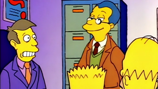 Родителей Барта вызвали вместе с ним к директору, где выяснилось, что на основании теста (который в действительности подделал) выяснилось, что он гений Видео доступно в нашем ТГ канале [Директор] Mr. and Mrs. Simpson, this is our district psychiatrist,