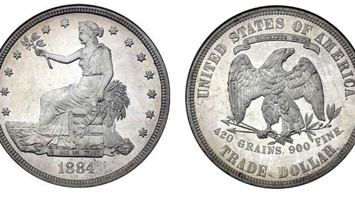 Американский торговый доллар - одна из самых интересных и желанных монет XIX века. Он обладает великолепным дизайном и интересной историей, привлекающих многих нумизматов. Изготавливался из серебра 900 пробы и имел вес 27.2 грамма, о чём указано на самой монете - «420 GRAINS 900 FINE». Американский торговый доллар был выпущен в обращение в 1873 году по решению Конгресса США для торговли с азиатскими странами, в частности с Китаем. Главным его конкурентом был мексиканский серебряный песо, который к тому моменту уже завоевал популярность по всему миру...