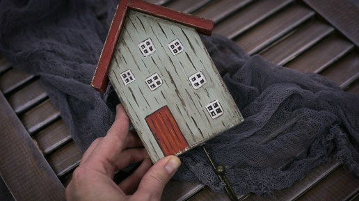 Привет друзья, сегодня хочу показать вам как сделать простую, но милую вешалку в виде домика. Для начала я взяла небольшую дощечку, она около 9 см в ширину и 15 см в длину. Отпилила её под углом 45 градусов. Для ровного угла я использовала специальный инструмент стусло (чтобы не убегало, оно должно быть прикручено к столу) и ножовку, правда, у меня оказалась только «по металлу», поэтому пилила я долго). Для крыши взяла реечку, около 2.5 см в ширину.Если у вас есть электролобзик, процесс пойдет гораздо быстрее...