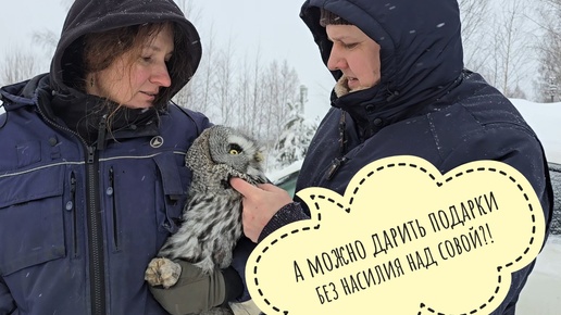 Сова неясыть Кофи получил подарок на Новый Год. Кажется, он не рад