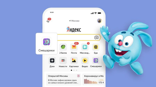 Не так давно в приложении Яндекс появился специальный раздел для детей — домик Смешариков. Там можно посмотреть последний сезон мультсериала, поиграть в развивающие игры и пообщаться с Алисой.