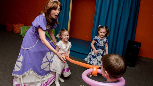 (лучше если это будет песня Софии из мультика, заставка) Появляется Принцесса София, приветствует гостей, общается, хвалит наряды девочек, аккуратность мальчиков и т.п., собирает всех вокруг себя София: Здравствуйте, друзья. Я – принцесса София. Вернее я еще не совсем принцесса, я только еще учусь в королевской академии принцев и принцесс. Это так интересно! Вот, например, нас там учат не просто здороваться, а приветствовать друг друга как принцы и принцессы из разных стран. Хотите...