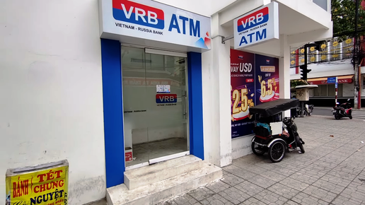 Часто возникает вопрос, что с собой брать, какую валюту при поездке в Азию и, в частности, во Вьетнам? В идеале, конечно, это доллары. К сожалению, в данный момент доллары нового образца купить в России затруднительно. Но и доллары старого образца, имею в виду с крупным портретом президента на купюре, меняют здесь тоже, правда, с немного худшим курсом. А работают ли карты "Мир"? Да, работают. В некоторых магазинах можно оплатить и по QR-коду, который здесь часто используют и достаточно активно. Сейчас я покажу вам здание VRB...