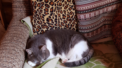 Здравствуйте, дорогие друзья! Вы, конечно, помните лесного кота, который пожаловал к нам в гости? Я про него уже писала. Так вот, сейчас будет продолжение. Оказывается, этот кот с соседних дач, точнее с соседнего СНТ. Подобрали его на заправке и приютили у себя добрые люди. Кот уже старый, больше 12 лет ему (точно неизвестно, но приблизительно по его состоянию). Беззубый и некастрированный. Поэтому любит гулять сам по себе и ищет приключения, как и все некастрированные коты. Гулять может по несколько дней, но потом опять возвращается в приёмную семью...