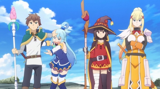 Жанр: приключения, комедия, фэнтези Оценка по ШЦ: 8 из 10 Синопсис Когда игроман-затворник Кадзума Сато окончил (преждевременно) свои дни на грешной земле, то очнулся в межреальности, где ехидная богиня Аква сделала ему предложение, от которого трудно отказаться. Да, вместо перерождения в жука или муху Кадзума получил шанс отправиться в игровой мир и «поработать по специальности», победив местного Князя Тьмы. Юному герою разрешили взять с собой что-то одно: и парень выбрал Акву – а нечего было выпендриваться!...