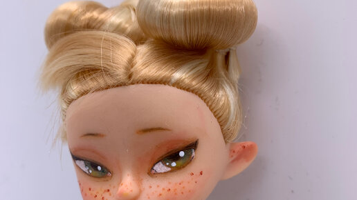 Это была вторая кукла, которую я решила перерисовать. Достала я ее все из той же необъятной коробки с заигранными игрушками. Стандартно отмываю тельце, стираю мейк, обезжириваю. Наношу слой матового акрилового лака. Теперь можно набросать будущее лицо. Мне очень нравятся ушки у кукол этой линейки. Хочется их как-то вписать в образ. Я не знакома с историей персонажей Фееринок, но мне в этой кукле видится лесной эльф. Первый слой: акварельные карандаши, немного белой акриловой краски. Снова наносим лак-закрепитель...
