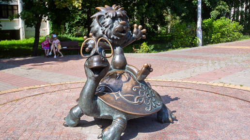 Прогулка по Раменскому. Тут почти никогда не бывают туристы, это не Коломна, и не Серпухов. Ну и, будем честными, это справедливо... Помимо мультяшных героев, парк украшен и другими интересными объектами. В Раменском, как и в любом другом российском городе, если есть что привлекательное, так это тщанием купцов когда-то было создано. Потому если дворяне нам милы усадьбой, то купцы - фабрикой. В центре озера на небольшом островке находится фонтан со скульптурной композицией “Адам и Ева”...
