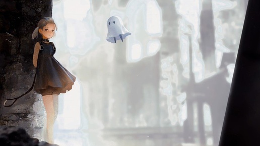 Фио и Мама Живые обои - Аниме Фио тихая девочка в светлом платье, память её пуста, но взгляд полный решимости. Рядом Мама, легкий, смешливый призрак, который ведёт её по странной Клетке и знает больше, чем говорит...