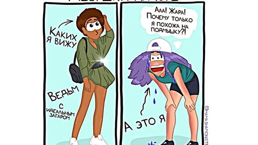 Пляжные комиксы от художницы с фиолетовыми волосами