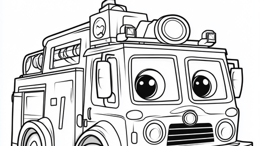 Создано на основе запроса: a cute cartoon Fire truck character, line art coloring book for kids