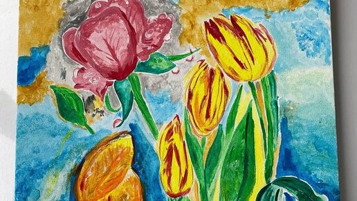 Painting "Flowers".Author M Guzel M 2021.Холст.Акрил.Brauberg art.