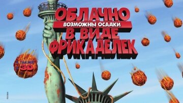 Облачно, возможны осадки в виде фрикаделек Главный герой мультфильма - странный ученый Флинт Локвуд, который всегда хотел изобрести что-то такое, что сделает его родной городок счастливым. И вот, у него получилось! Еды теперь хватает всем, и она просто падает с неба, создавая новые пейзажи вокруг: можно любоваться закатом с живописных холмов из фруктового желе. Но иногда вкусные осадки в виде фрикаделек могут превратиться в настоящий торнадо из аппетитных, но уже опасных спагетти! Гениальному ученому и его друзьям предстоит исправить положение дел в сытом городке...