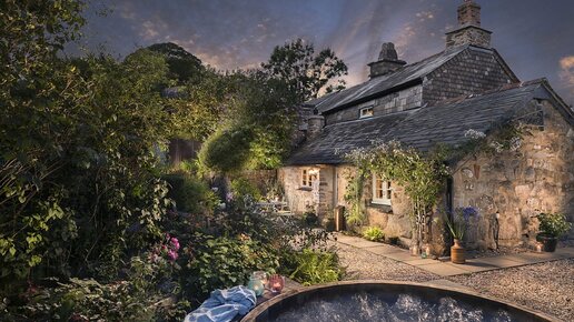 Идеальное убежище - небольшой старый дом из дикого камня в окружении сада. Цвет настроения - синий. Всё синее!