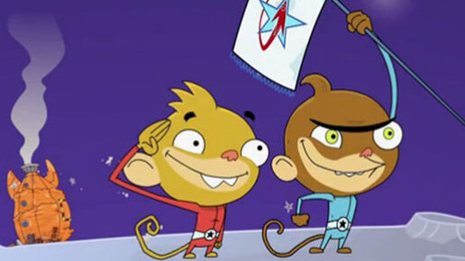 "Котопес", Nickelodeon В сериале "Котопес" помимо главного героя - котопса, есть несколько второстепенных героев. Один из них - кролик Рэнсид. Он всегда играет роли начальников: то мэра, то председателя совета ветеранов. В серии "Пес съел мою домашнюю работу" (A Dog Ate My Homework ) кролик Рэнсид - президент США. Когда президент Рэнсид приезжает в дом Котопса, то на его лимузине реют целых два президентских флага. Они действительно несколько напоминают флаг президента США. "Космо-мартышки" Космо-мартышки...