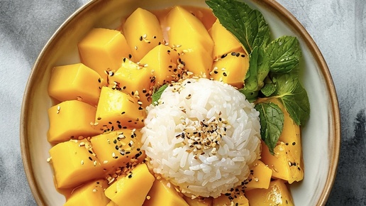 Рис, который обнимает манго, а кокос шепчет сладости на ухо... Тайская магия в тарелке   Манго-стики-райс — это не просто десерт. Это путешествие в душу Таиланда, где рис становится шелковистым облаком, манго — солнцем, а кокосовый соус — тропическим дождем. Блюдо, которое столетиями готовили на улицах Бангкока, сегодня покоряет мир своей простотой и глубиной вкуса. Его секрет? Контраст: нежность липкого риса против сочности манго, сладость кокоса, уравновешенная щепоткой соли.   Ингредиенты: Минимум — максимум эмоций   Основа — трио, которое звучит как аккорд:   1...