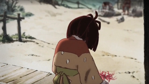 " Я верила в него" Поле. Окровавленный самурай и громадный белый медведь. Медведь отвернулся от человека и побрёл... "Пред тобой трепещет вся деревня, чудовище, о силе, которого ходят легенды" В деревне двух женщин отдали красному чудовищу и староста надеется что это будут последние жертвы. Осталась только девочка Ао (как всегда, мужчины на эту роль не годятся(((. Староста просит пришедшего в деревню самурая убить красного "демона". Ао прибежала на поляну с цветущими красными паучьими лилиями (Ликорис (лат...