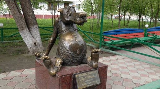 Все мы с детства любим и помним советские мультфильмы, поэтому неудивительно, что во многих уголках нашей страны можно встретить скульптуры родных героев. Томск В городе Томск установлен памятник из мультфильма «Жил-был пес». Называется он «Щас спою» или «Памятник счастью». Он был подарен городу предпринимателями в честь 400-летия Томска. Символом счастья заказчики и авторы скульптуры выбрали фигуру, наиболее полно воплощающую это состояние, — сытого волка на свадьбе из легендарного мультфильма «Жил-был пес»...
