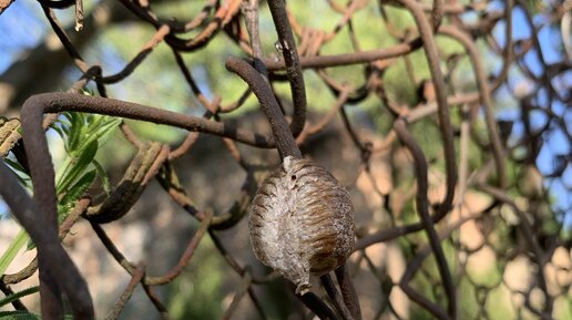 Когда мы заехали в наш дом, я нашла странные наросты на деревьях. Первая мысль, это какая-то болезнь. Начала спрашивать, может кто знает что это такое. Оказалось, даже люди которые долго живут в селе не знают что это. ⠀ Мама начала искать информацию в интернете. И нашла. Это гнезда богомола или «Оотэка»-коробочка для яиц. В нашем саду можно найти и пустые, и те которые ещё наполненные. ⠀ После того как самка спарилась с самцом (в 50 % случаев она сожрет самца), начинается строительство гнезда, куда в дальнейшем самка будет откладывать яйца...