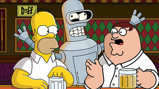 Гомер Симпсон "Симпсоны" Гомер один из главных персонажей мультсериала "Симпсоны". Гомер часто после работы заезжает в Таверну Мо, где его встречают друзья-коллеги алкоголики и вечно пьяный Барни. В таверне он пропускает пару бокал пиво и едет домой. А дома он частенько выпивает пиво Duff. Бендер "Футурама" Бендер имеет много вредных привычек. Он курильщик, клептоман и алкоголик. Он почти никогда не расстается с алкоголем, потому что алкоголь восполняет его энергию и без него он никуда. Питер Гриффин "Гриффины" Питер Гриффин, как и Гомер Симпсон, любит выпить пиво после работы...