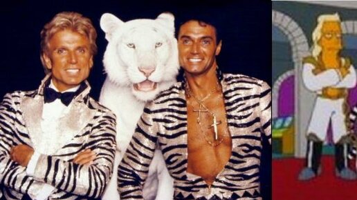 Здравствуйте,дорогие читатели,сегодня я хочу поделиться с вами небольшой статистикой,но поверьте,очень удивительной! Наверняка все слышали о Симпсонах и то что, что некоторые вещи из сюжета повторились в жизни с точностью. Но сейчас я хочу чтобы вы увидели не 2-3 и не 5 моментов из мультика,а гораздо больше. Автор явно что-то знал заранее)) Нападение белого тигра на дрессировщика Роя Хорна. В Спрингфилде легализовали азартные игры, мистер Бёрнс открыл казино. В нем выступали дрессировщики Гюнтер и Эрнст, которые пародировали выступления Зигфрида Фишбахера и Роя Хорна в Лас-Вегасе...
