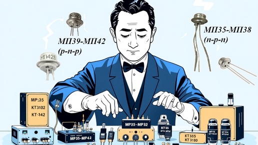 Старые германиевые транзисторы серий МП35-МП38 (n-p-n) и МП39-МП42 (p-n-p), несмотря на свою верную службу, безвозвратно ушли в прошлое. Их место занимают более современные, надежные и доступные кремниевые аналоги. Однако, простая замена "индыка на быка" не всегда возможна, особенно если речь идет о сохранении усилительных свойств и уже отлаженных режимов работы схемы, таких как напряжение насыщения. В этой статье мы разберемся, как вместо германиевых МП35-МП38 и МП39-МП42 подобрать подходящие кремниевые транзисторы и какие особенности следует учесть при замене в различных типах схем...