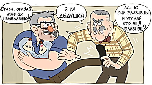 Хотите узнать, как выглядят супруги Пайнс? А дедуля Шерми? 8 июля - День семьи, любви и верности. Поэтому сегодня вас ждут истории о родственниках Диппера и Мэйбл. Немного о новорождённых близняшках, их родителях и брате Стэна - Шерми. Трогательные, забавные и милые комиксы как всегда #юмор тоже будет. Давайте посмотрим 3 новые истории на тему #Гравити Фолз из сборника комиксов, переведённых на русский язык сайтом readmanga.live (Перевод: JKosh.) от разных художников. Для удобства чтения, #комиксы помещены в галереи...