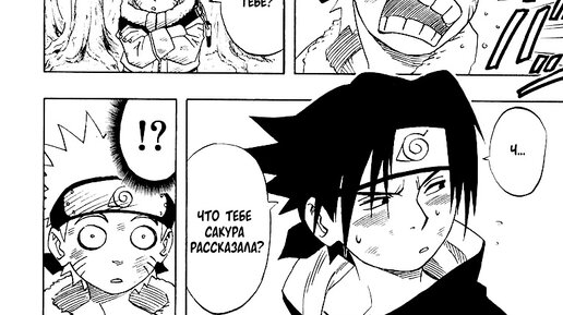 Хм... Посмотрите на эти фреймы! Саске ревнует, когда он не единственный кому улыбается Сакура или когда он не единственный, кто получает её внимание и благодарность. Он действительно ревнивый, когда это касается его жены! И здесь одна действительно интересная панель, которую многие пропустили, не так много людей заметили эмоции Саске, когда читали.