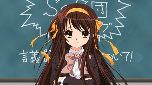 В джинсы облачились самые отсталые слои населения. В смысле - это я посмотрел аниме про Харухи Судзумию. Вот, спешу поделиться радостью. Это шикарная вещь в практически забытом у нас жанре - подростковая (ну, условно подростковая, все-таки героям 16-17 лет) фантастика. Именно что чистая фантастика, снятая, что для аниме не очень характерно, не по комиксам-мангам, а по книжкам, в которых одни слова и нет картинок. Молодой человек поступает в старшую школу (вы помните, да, что у японцев младшие,...
