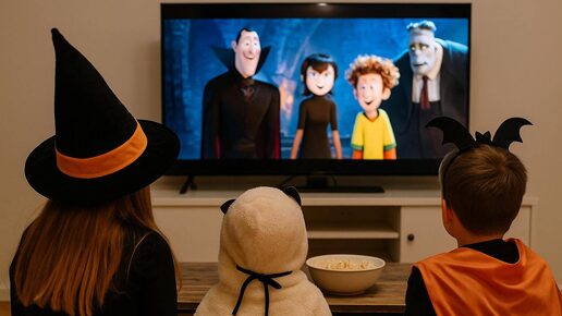 Хэллоуин — отличный повод собраться всей семьёй под одним пледом. Вечером, когда за окном темно, а в доме пахнет какао и карамелью, мультфильмы про ведьм, привидений и вампиров создают то самое чувство уюта и волшебства. Они помогают детям увидеть: страшное бывает не только пугающим, но и забавным, а смелость — это не отсутствие страха, а умение улыбнуться ему в ответ. Держите топ мультфильмов на Хэллоуин для семейного просмотра. Один из любимцев детей — Монстры на каникулах. Здесь даже Дракула оказывается заботливым отцом, а замок, где живут чудовища, — место веселья и дружбы...