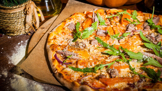 Пицца с тыквой и уткой