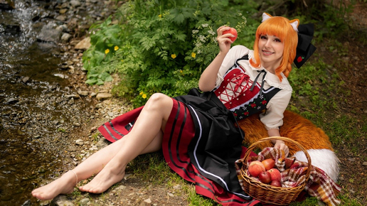 Тёплое солнце, аромат спелых яблок и звонкий ручей — идеальные декорации для богини урожая Хоро из «Волчица и Пряности». В этом косплее воплотилась вся её сущность: хитрая улыбка, лукавый взгляд и свобода странствий. Кажется, ещё немного — и Хоро заговорит о ценности медных монет или попросит кружку лучшего вина. Фэндом: Волчица и Пряности