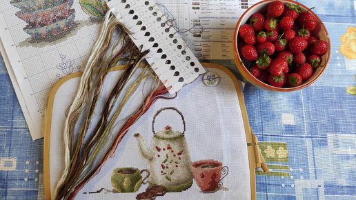 Вышивать на даче одно удовольствие! Правда, не всегда много времени можно этому уделить. Сбор орехов, обрезка роз, заготовка веточек для домашнего питомца - кролика. Всё надо успеть. Но пока идёт дождь - самое время для хобби. Отсутствие заморозков позволяет продлить сбор урожая: малины и садовой земляники. Конечно, ягод уже мало. Но они есть! И в октябре кажутся особенно вкусными. Малину люблю есть с куста. Ну, а землянику всё же обязательно надо помыть, так как она очень близко к земле. Что вы больше любите: малину или землянику (клубнику)? В детстве я однозначно выбирала клубнику...