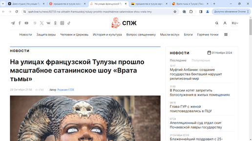 Это попалось вчера и совершенно случайно. 25-25 октября, во Франции на улицах Тулузы состоялось шоу «Хранитель храма – Врата тьмы», в котором огромные статуи демонов прошли через весь город, Три огромные роботизированные куклы мифологических существ: Лилит – наполовину женщина, наполовину скорпион, с паучьими ногами и бараньими рогами, а также паучиха Ариана и Минотавр Астерион выступали по всему городу...