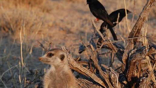 Птица Дронго живет в пустыне Калахари в Южной Африке. Это пожалуй самая хитрая птица. Судите сами. Зимой ей трудно добыть себе пропитание.. Этой птице не досталось крепкого клюва и каких–либо физических сверх-способностей. Но она научилась это прекрасно компенсировать, придумывая разные хитрости. Эти птички «устраиваются на работу» к другим собратьям по птичьему и животному миру и выполняют роль своеобразной "охранной сигнализации". Заприметив приближающегося хищника, они издают тревожные звуки с "металлическим" оттенком...