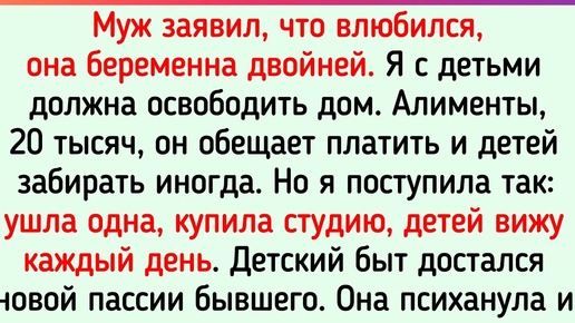 Суперженщина — так можно сказать про каждую героиню историй в этой статье. Даже если обстоятельства против них, они не вешают нос и справляются с неприятностями на раз-два. Мой муж заявил, что он влюбился, она беременна двойней. Я с нашими детьми должна освободить его большой дом. Алименты, 20 тысяч, он обещает платить и детей забирать иногда. Но я поступила так: ушла одна, купила студию по соседству, детей вижу каждый день. Большая часть детского быта досталась новой пассии бывшего. Она психанула и оставила ему годовалую двойню и свалила на съемную квартиру...