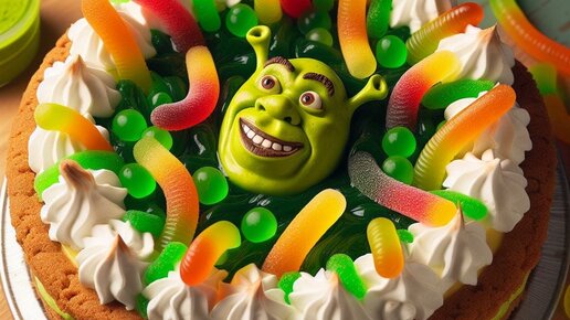 Пирог с червяками — это необычный десерт, который Шрек делает для своего друга Осла, когда тот приезжает к нему в гости. Этот пирог выглядит как обычный шоколадный пирог, но внутри скрываются желеобразные червяки, которые создают сюрпризный эффект. Вы можете приготовить его по этому рецепту: Ингредиенты: Готовим: - В блендере измельчите печенье до крошки и смешайте с растопленным маслом, чтобы получилась масса для основы пирога...