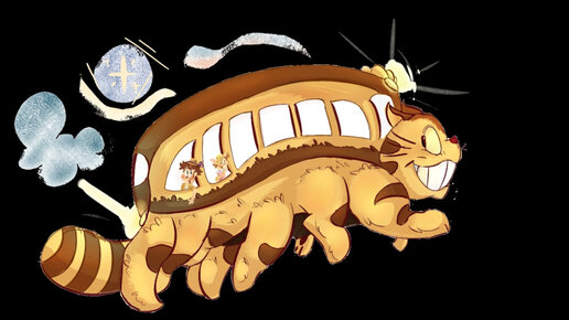 Котобус (Nekobasu) Персонаж из мультфильма «Мой сосед Тоторо» японского классика анимации Хаяо Миядзаки. Это полу-кот, полу-автобус. Его длинное тело со множеством лапок напоминает гусеницу. А глаза не только светятся в темноте, как у всякого кота, но и служат ему фарами. Впрочем, точно известно, что это взрослый кот. В мультфильме котобус находится на втором плане, и зритель ничего не знает, как кот стал автобусом или автобус котом, или может быть, это вообще такая новая порода. Его способность широко улыбаться и исчезать наводит на мысль, что котобус является потомком Чеширского кота...
