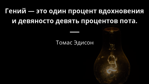 Фраза «Гений – это 1% вдохновения и 99% пота» принадлежит американскому изобретателю Томасу Эдисону. Она означает, что успех и выдающиеся достижения в любом деле зависят не столько от таланта и идей, сколько от тяжелой, систематической работы.  • 1% вдохновения – это озарение, идея, концепция, которая приходит в голову. Она важна, но сама по себе ничего не дает.  • 99% пота – это упорный труд, эксперименты, ошибки, исправления, доработка идеи, которая превращает задумку в реальный результат.  1...