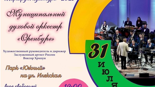 Оркестр «Оренбург» даст концерт в Южном парке. Послушать музыку в исполнении духового оркестра под руководством Заслуженного артиста России Виктора Хрипуна оренбуржцы смогут 31 июля. Начало в 19.00...