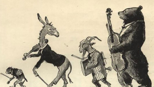 Проказница-Мартышка, Осел, Козел Да косолапый Мишка Затеяли сыграть Квартет. Достали нот, баса, альта*, две скрипки И сели на лужок под липки - Пленять своим искусством свет. Ударили в смычки, дерут, а толку нет. "Стой, братцы, стой! - кричит Мартышка. - Погодите! Как музыке идти? Ведь вы не так сидите. Ты с басом, Мишенька, садись против альта, Я, прима, сяду против вторы**; Тогда пойдет уж музыка не та: У нас запляшут лес и горы!" Расселись, начали Квартет; Он все-таки на лад нейдет. "Постойте ж, я сыскал секрет, - Кричит Осел, - мы, верно, уж поладим, Коль рядом сядем"...