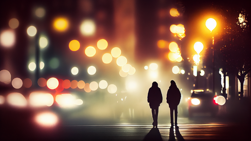 Одна в толпе, иду по ночному городу, Сквозь мерцание огней, как сквозь густой туман. Мне мерещится вдали знакомый образ, милое лицо, Но это только сон, Сон, который несбыточен, как грезы. Так часто я останавливаюсь на мгновенье, В тишине тумана, ищу света луч...