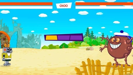 Заяц-робот из «Ну, погоди!» сразился с Железной няней из «Смешариков». Бой в стиле Mortal Kombat