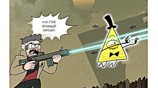 Вчера, 30 ноября был День жёлтого треугольного злодея из диснеевского мс. Поэтому вас ждёт сборник из историй, главным персонажем которых стал Билл. Посмотрим 4 новые истории на тему "Гравити Фолз", небольшие, но прикольные и весёлые. Они взяты из сборника комиксов, переведённых на русский сайтом readmanga.live. Перевод: JKosh. Комиксы будут посвящены самому загадочному из мистических существ Гравити Фолз. Готовы? Тогда начнём! Глава "Наконец-то встретились. Часть 2". История "Игра слов". Здесь мой перевод...