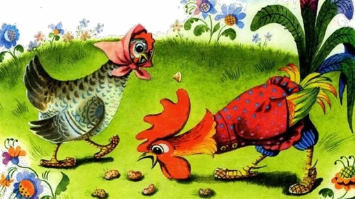 Жили-были петушок да курочка. Рылся петушок на дворе и вырыл бобок. Съел петушок зёрнышко и подавился. Позвал курочку: