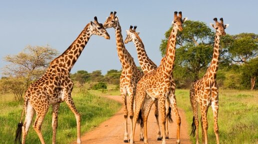 Жираф — одно из самых необычных и хорошо узнаваемых животных. Сегодня на территории всех стран мира жирафы строго охраняются, так как, к сожалению, на планете их осталось совсем немного. Чего мы не знали о жирафах? 1. Животное с длинной шеей без труда перепрыгивает препятствия до 2 метров в высоту. 2. А вы знали, что далёкие предки жирафов не имели такой длинной шеи. Эволюция подкорректировала внешность животных с яркой окраской и, в буквальном смысле слова, вытянула их шеи, что помогло жирафам добывать больше пищи, срывая листочки с макушки деревьев...