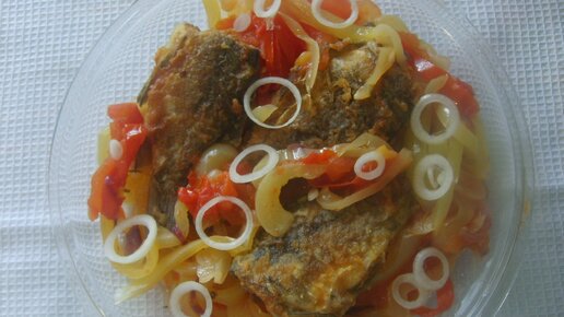Рыба тушеная с луком и сладким перцем. Рецепт от бабушки Лиды.