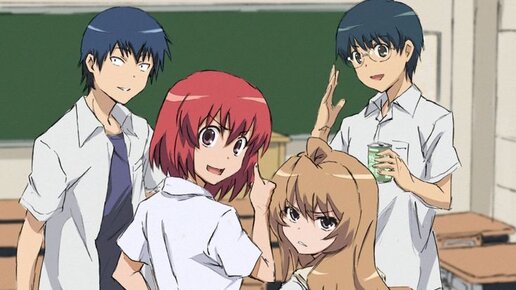 5. ТораДора! Действия происходят в одном японском городке, где проживает главный герой - парень по имени Рюдзи Такасу. Он вскоре начинает обучение в старшей школе, и узнаёт что переведён в другой класс, где оказалась не только его друзья, но и одна девушка, в которую влюблен главный герой. Её зовут Минори Кусиэда, которая пока что не замечает Рюдзи, так как она полностью поглощена уроками и работой после занятий. Такасу потерял надежду, что ему удастся завоевать сердце красавицы, но однажды он знакомится с Тайгой Асаки...