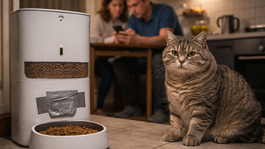 Как будто вместе с умной кормушкой в дом приходит порядок, ответственность и внутренний дзен. Не приходит. В дом приходит пластиковая штука с приложением, QR-кодом и характером. А вместе с ней — новые поводы ругаться. Причём такие нелепые, что стыдно пересказывать друзьям. Но люди всё равно ругаются, потому что стыд — не мешок цемента, им ничего не скрепишь...