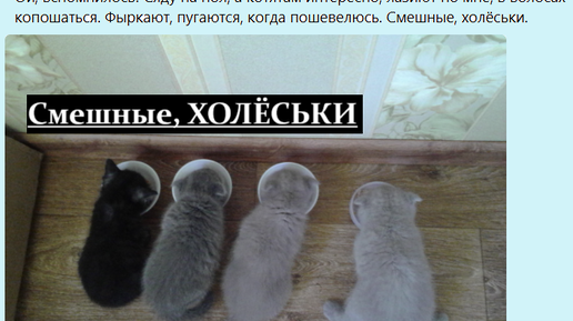 Пребывая в отличном настроении я утром полезла посмотреть на канале комментарии. Ожидала, что под вчерашней статьей про милого котенка Тамару — непременно кто-то написал что-то позитивное и приятное. Но. Первым делом мне пришлось удалить один отзыв. И настроение сразу испортилось. Непременно найдется какая-то гадость, которую кто-то напишет даже в самой милой теме. В той статье шла речь о том, что котенок остался с мамой кошкой. Его удача была в том, что не забрали. Забронировали, но в последний момент, как узнали, что это не котик, а кошечка — отказались забрать...